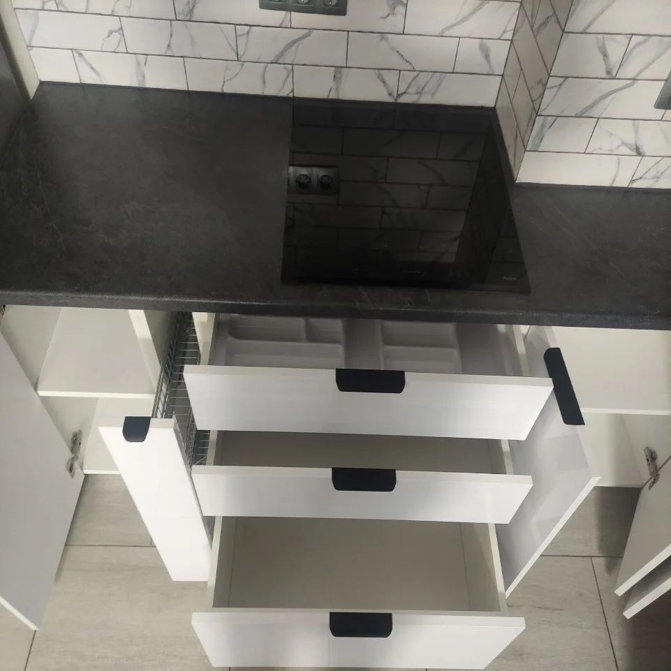 Большие, функциональные ручки на фасадах.
