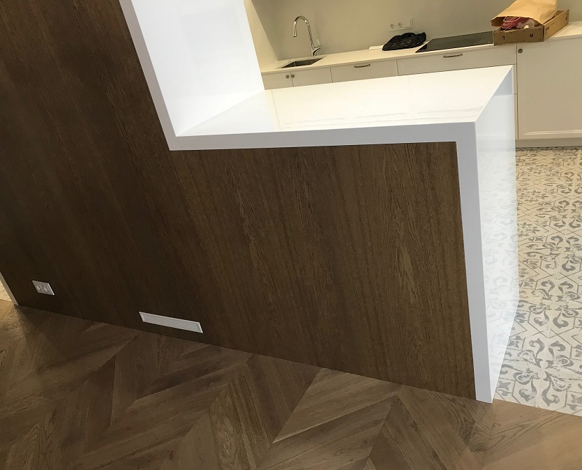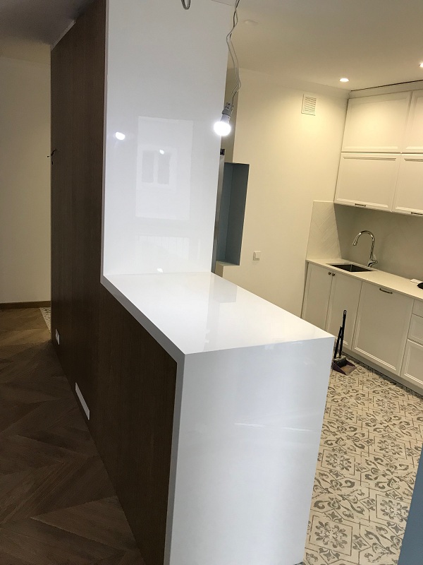 Материал: крашенный МДФ толщиной 60мм Белый глянец, шпон натуральный дуб