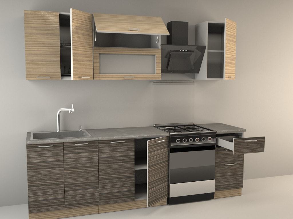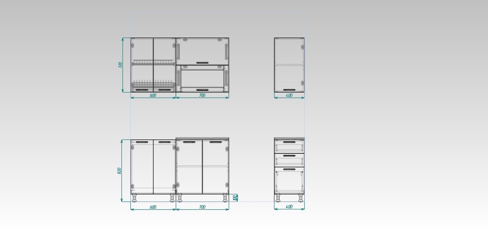 Материал фасада и корпуса: ЛДСП 16 мм. Ширина кухни 210 см.
