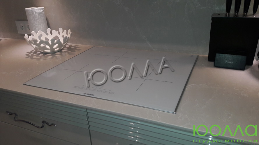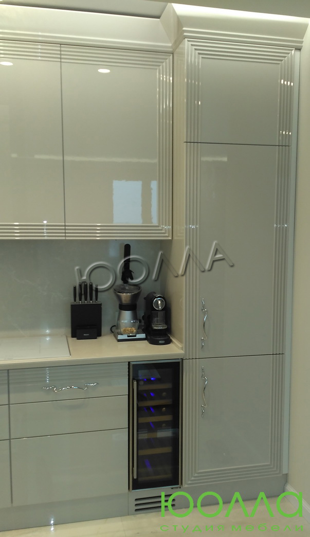 Кухня изготовлена со скрытыми креплениями и фурнитурой по немецкой технологии "Фолдинг". Винный шкаф - в стоимость не входит.