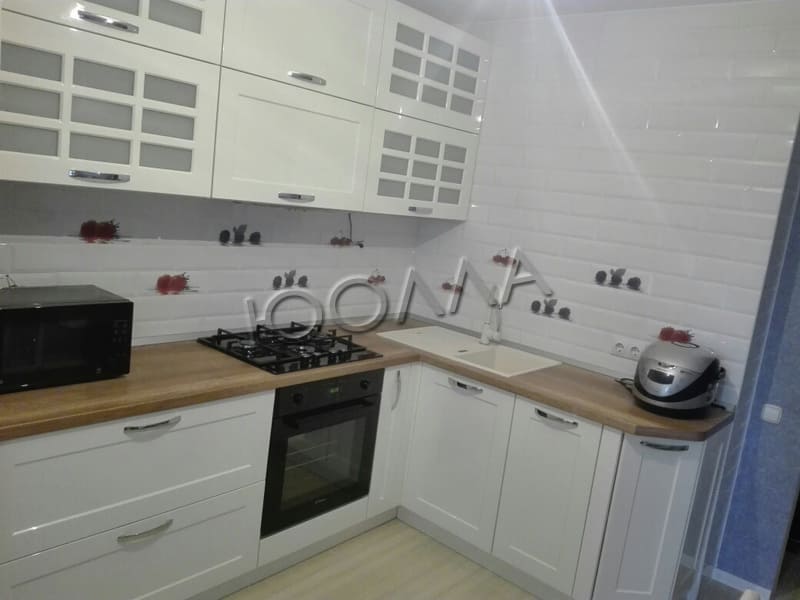 Современная угловая кухня 2,3 метра. Матовые фасады со стеклом.