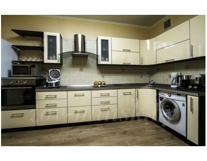 Кухня ЗОВ №26 «Молоко» изготовлена из прочных высококачественных материалов европейского производства. Корпус окрашен в цвет венге темный, фасады выполнены в кремовом оттенке.