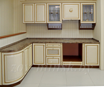 Угловая кухня в классическом стиле.
