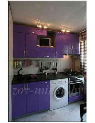 Кухня ЗОВ №47 «Фиолетовая» представляет собой компактную линейную конструкцию. Гарнитур изготовлен из прочных высококачественных материалов и оборудован стильными глянцевыми фасадами.