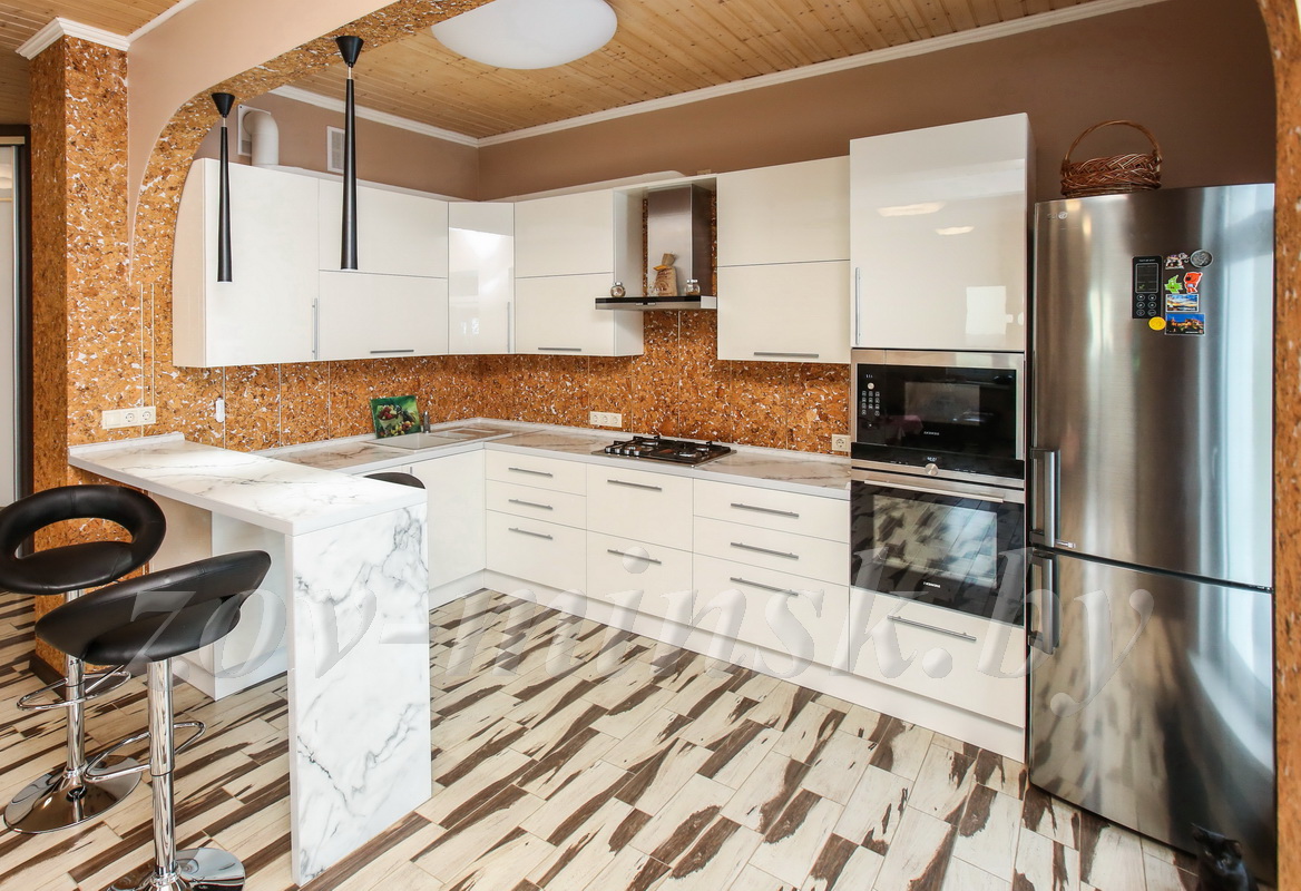 Изысканная угловая кухня ЗОВ выполнена в белом глянце. Кухонный гарнитур достаточно просторен, поэтому не будет препятствий для кулинарного творчества. Гарнитур оснащен множеством ящиков и шкафчиков, в которых будет храниться вся кухонная утварь и кухонные принадлежности, а также всевозможные специи и чаи. Фурнитура представлена стильными металлическими ручками.