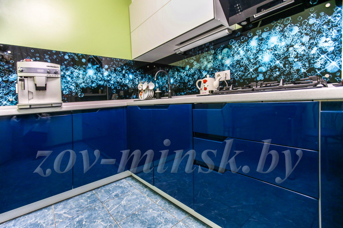 Современная кухня ЗОВ из крашенного МДФ «Интегро» представлена в изысканном и ярком дизайне, с выемками для открывания на фасадах. Фасад окрашен в насыщенный синий цвет, в результате чего гарнитур приобретает шарм и изящество. Вместительные шкафчики позволят разместить всю кухонную утварь максимально компактно, чтобы быстро найти все необходимое для готовки.