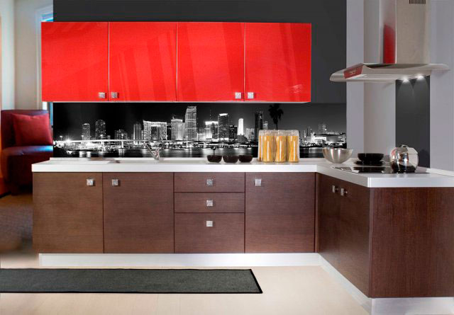 Кухня ЗОВ из МДФ выполнена в двух тонах. Шоколадно-коричневый цвет придает гарнитуру нотки классического сдержанного стиля. А оформление алых фасадов подвесных шкафчиков наполняет интерьер яркими чувствами и необузданной энергией современности. Тем не менее, весь гарнитур выдержан в едином стиле: одинаково-квадратные ручки и ровные линии подстраиваются сразу под два основных цвета.