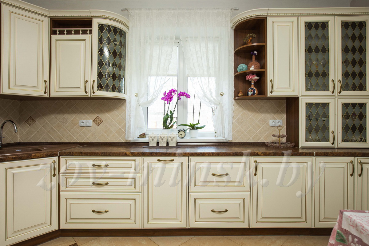 Кухня ЗОВ «Париж» выполнена из крашенного МДФ белого цвета с рядом остекленных створок c ромбовидным узором. Кухня практична и функциональна, в ней предусмотено множество шкафчиков и ящиков для посуды, кухонных принадлежностей, места для солонок и перечниц. Фасады кухни оснащены красивыми ручками в классическом стиле, которые помогают с удобством открывать шкафчики. Изысканная столешница добавит насыщенности кухонному гарнитуру.