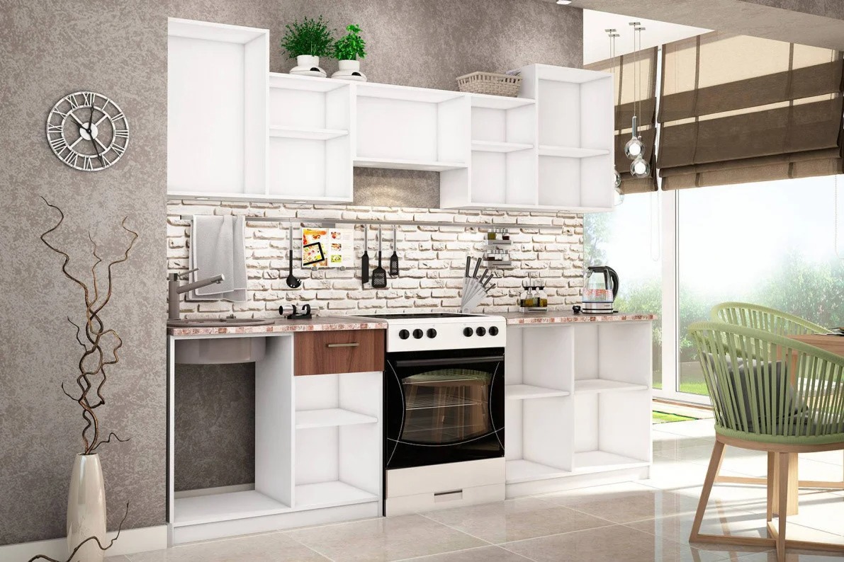 Ширина гарнитура 180 см, фасады покрыты матовой пленкой.