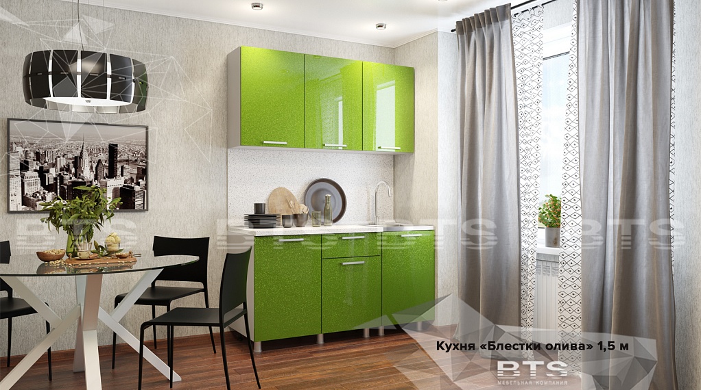 Кухонный гарнитур «Блестки Олива 1.5 м»