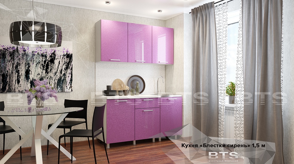 Кухонный гарнитур «Блестки Сирень 1.5 м»