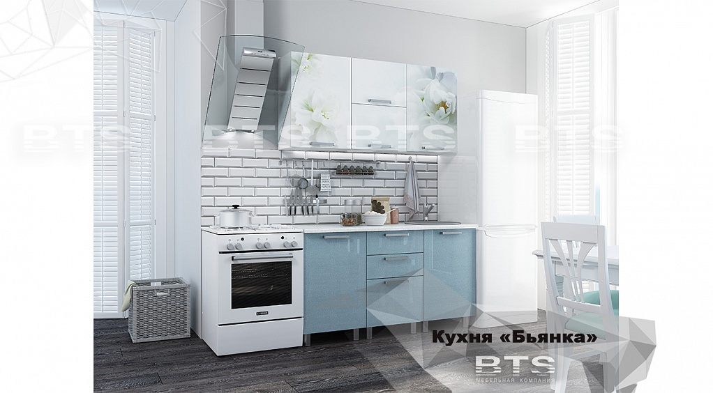 Кухонный гарнитур «Бьянка Голубые блестки 1.5 м»