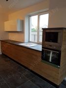 Угловая кухня с окном из ЛДСП с имитацией дерева