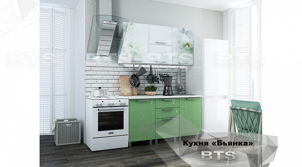 Кухня «Лира-Лайт» 1,3 салатовый-оникс
