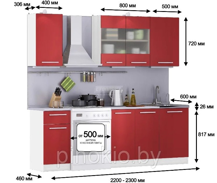 Материал фасада и корпуса: ЛДСП 16 мм. Ширина кухни 180 см.