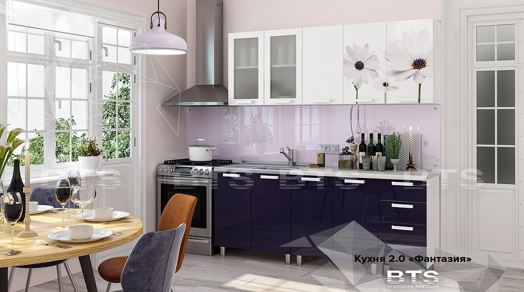 Кухонный гарнитур «Бьянка Голубые блестки 2.1 м»