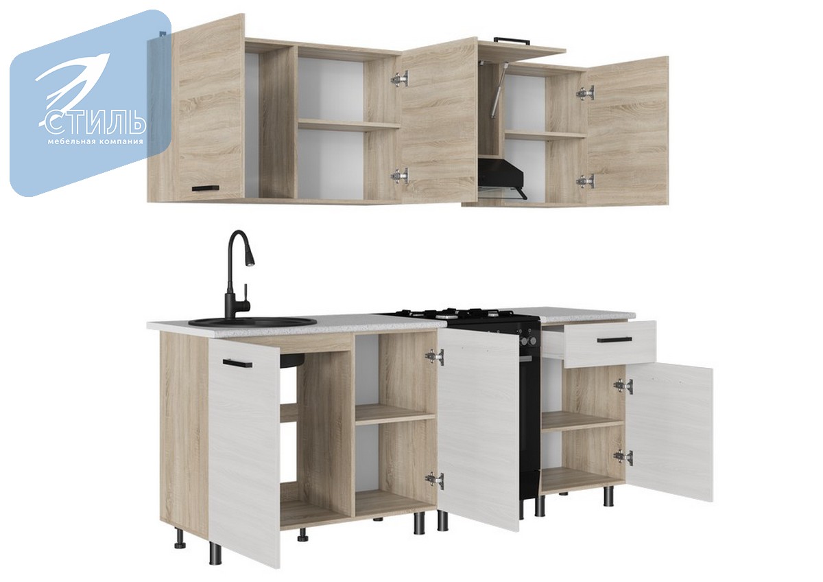 Стильный и функциональный кухонный гарнитур «Глория 2.0 м» в цветах «Дуб Сонома светлый/Ясень Анкор светлый». Этот комплект станет прекрасным дополнением к вашей кухне, обеспечивая комфортное и уютное пространство для приготовления пищи и семейных обедов.
