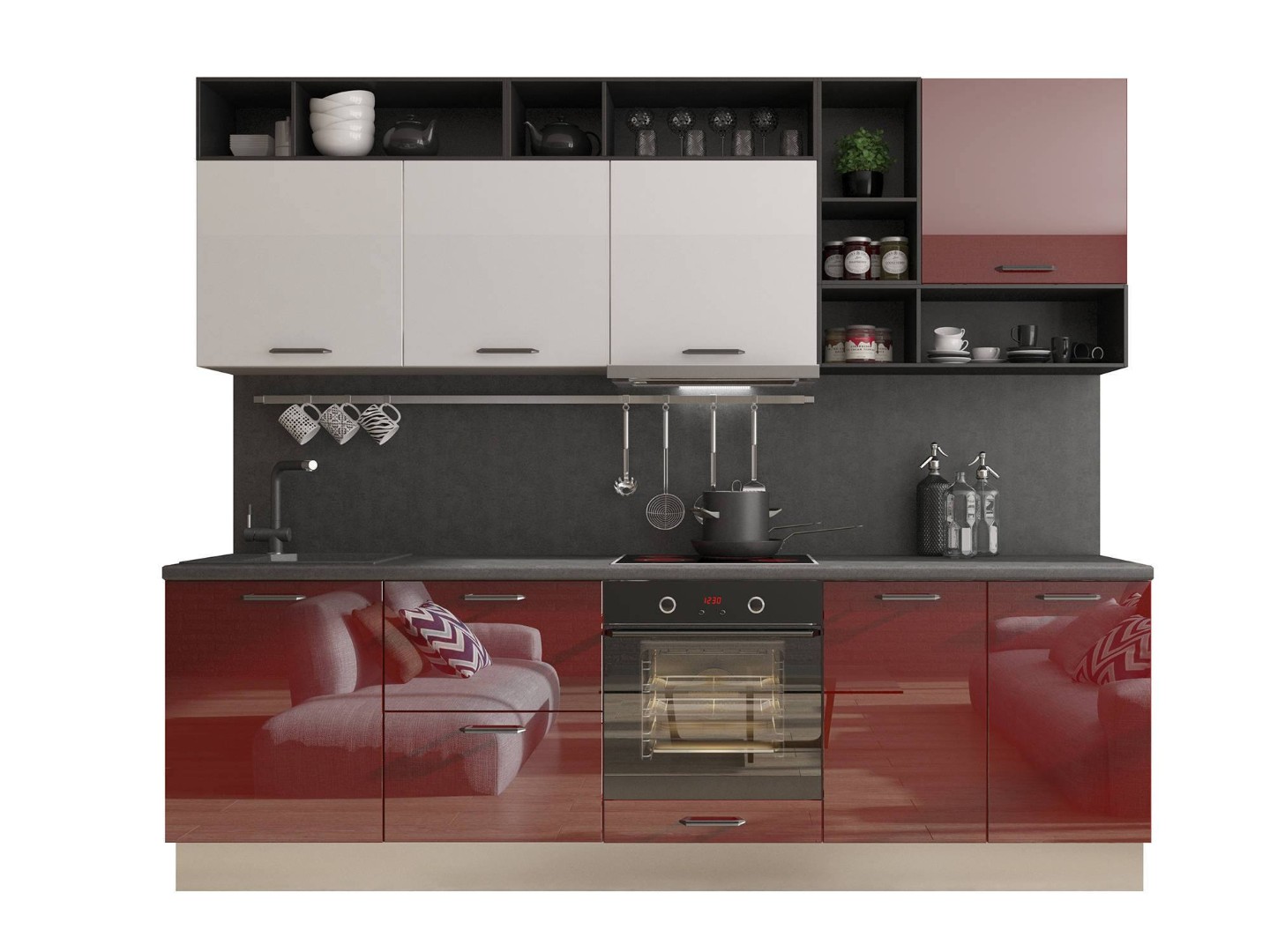 Общая ширина кухни: 2400 мм.