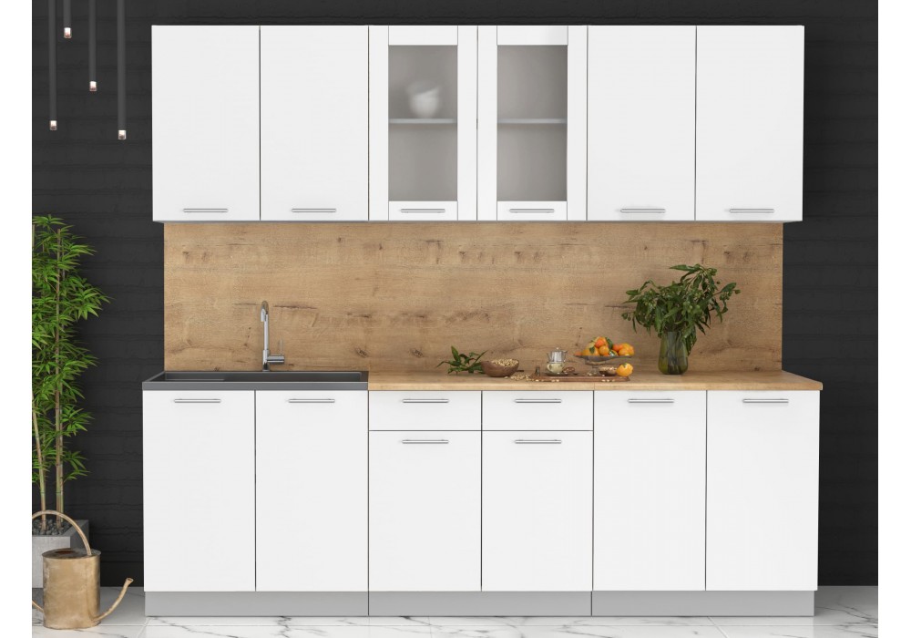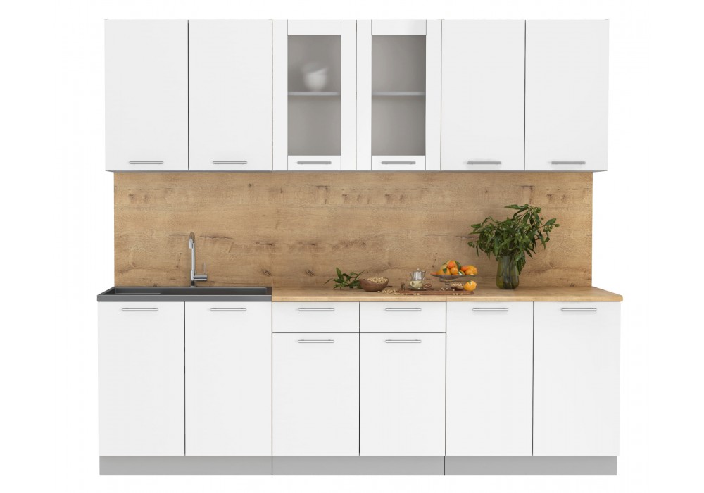 Кухонный гарнитур «Мила» 2,4 м (Белый Платинум/Белый Платинум) фабрика Интерлиния