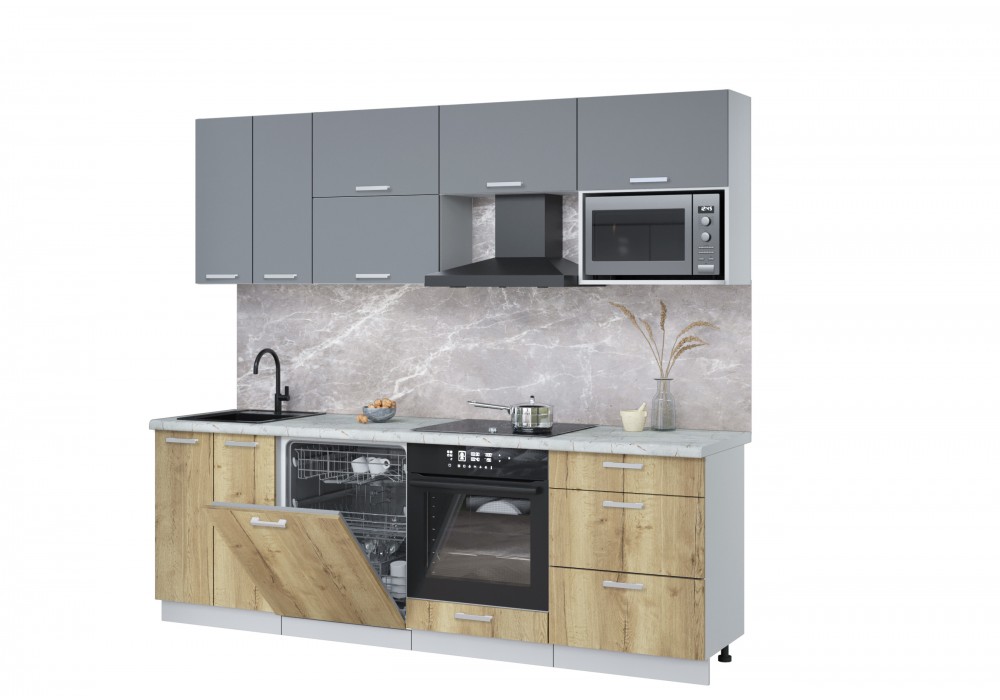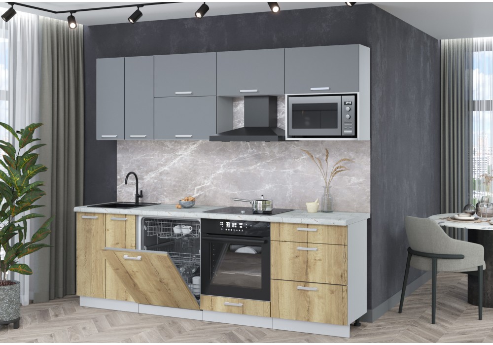 Кухонный гарнитур «Мила» Лайт 2,4-ПМ2 (Серебро/Дуб золотой/Серый каспий) фабрика Интерлиния