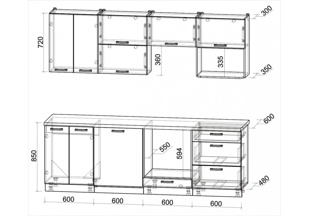 Высота нижних шкафов (см): 85