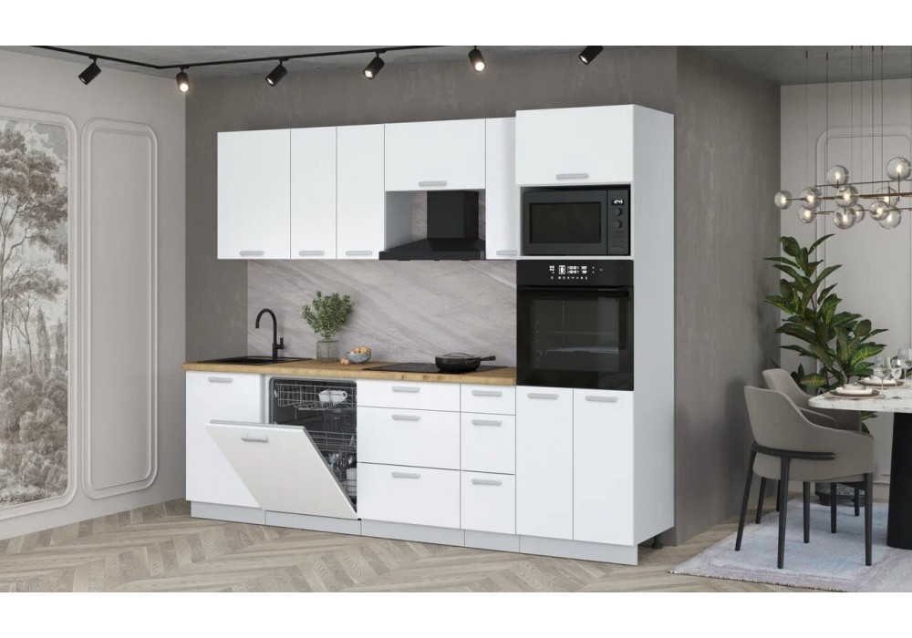 Кухонный гарнитур «Мила» Лайт 2,7-ПМ1 (Белый Платинум/Бетон/Гранит белый) фабрика Интерлиния