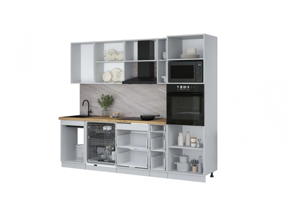 Кухонный гарнитур «Мила» Лайт 2,6-ПМ1 (Белый Платинум/Белый Платинум/Дуб бунратти) фабрика Интерлиния