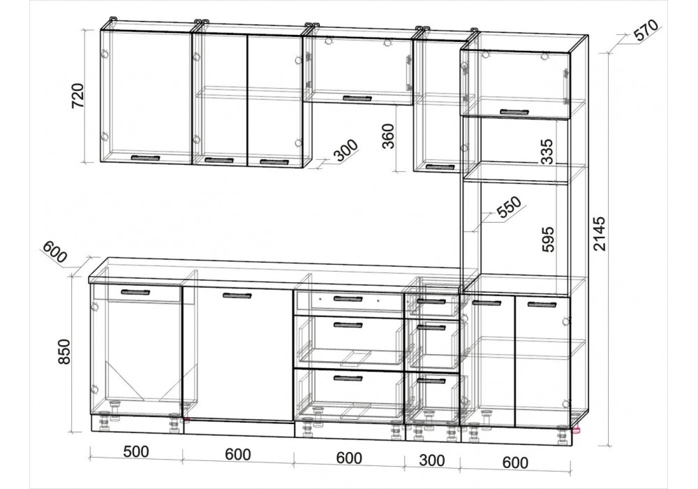 Высота нижних шкафов (см): 85