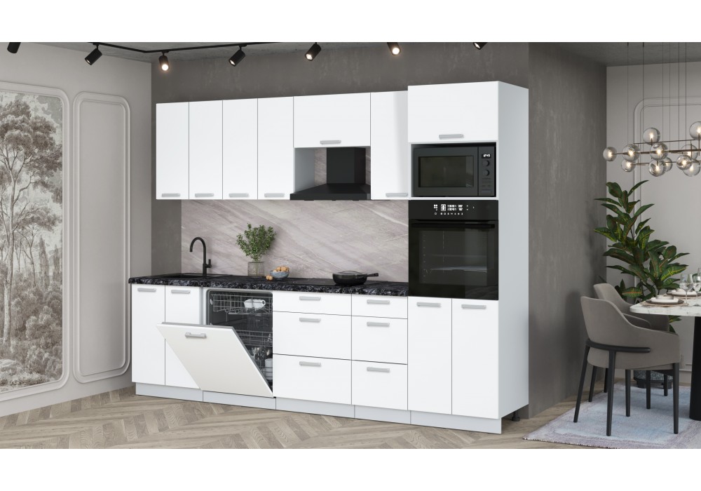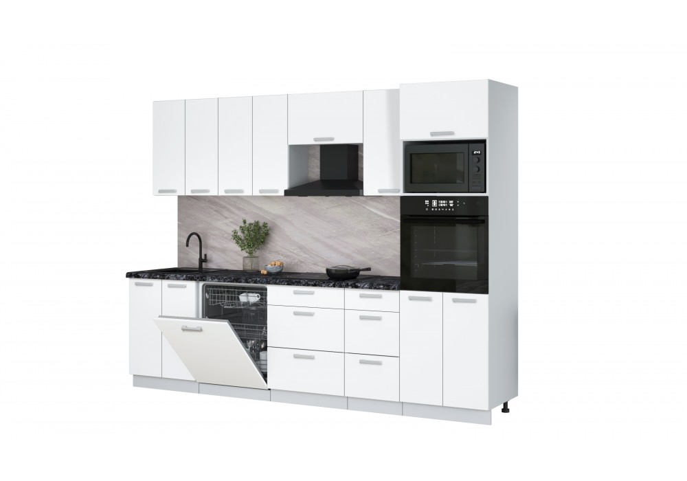 Кухонный гарнитур «Мила» Лайт 2,8-ПМ1 (Белый Платинум/Белый Платинум/Кастилло темный) фабрика Интерлиния