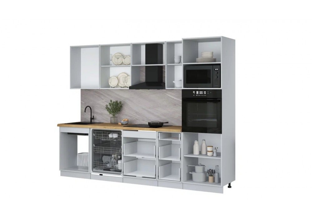 Материал фасада и корпуса: ЛДСП 16 мм. Ширина кухни 250 см.