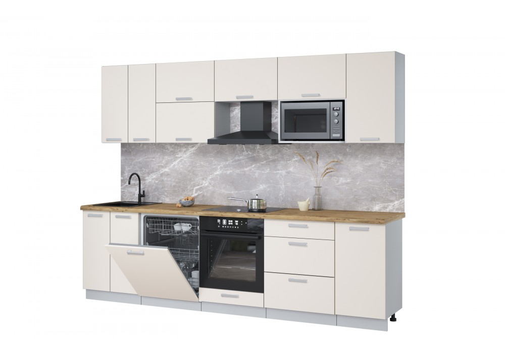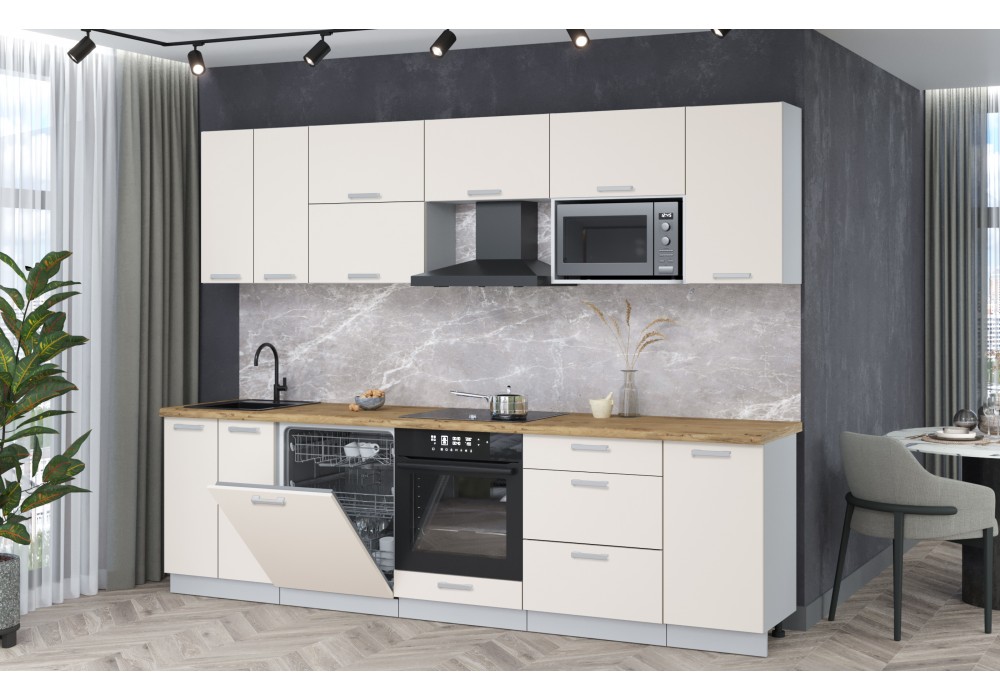 Кухонный гарнитур «Мила» Лайт 2,8-ПМ2 (Персидский жемчуг/Персидский жемчуг/Дуб бунратти) фабрика Интерлиния