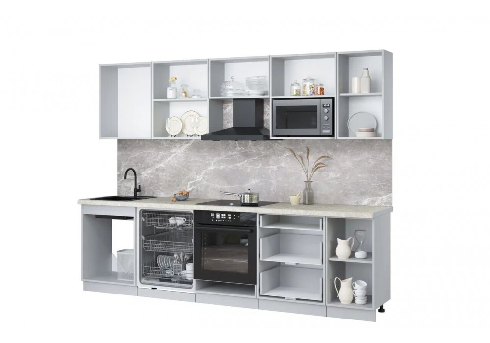 Кухонный гарнитур «Мила» Лайт 2,7-ПМ1 (Белый Платинум/Бетон/Гранит белый) фабрика Интерлиния