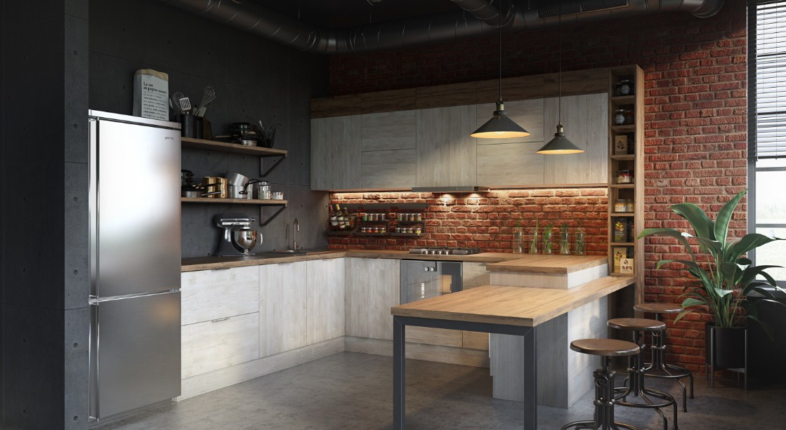 Практичный и надежный гарнитур в сочетании темного и светлого цветов фасада.