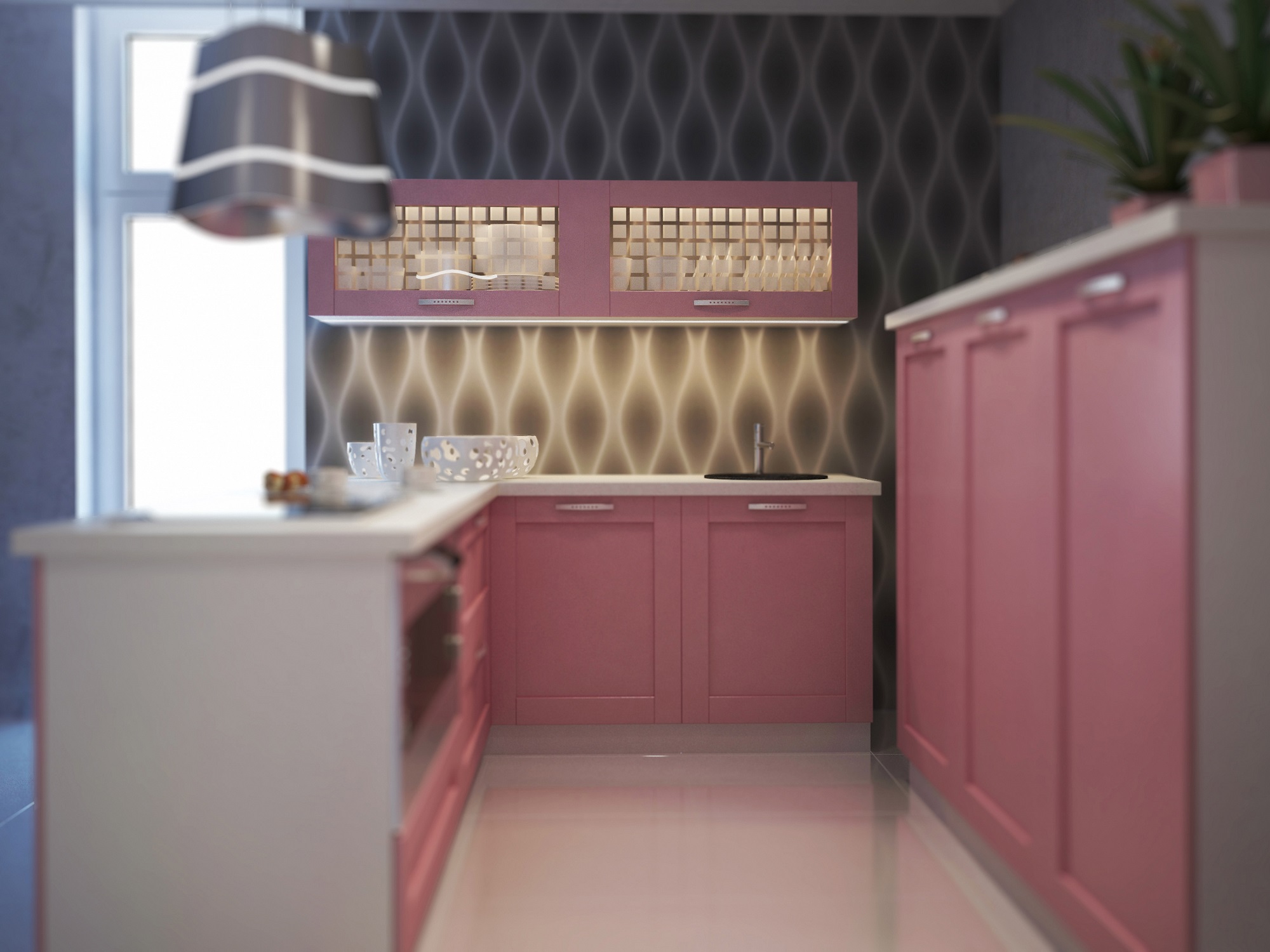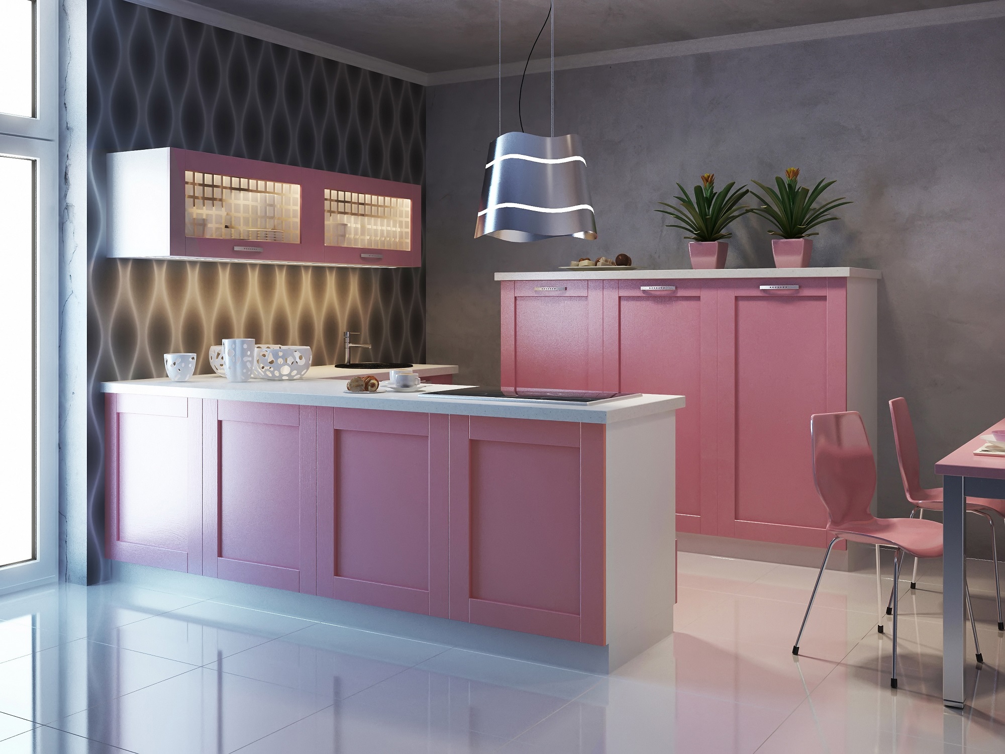 Кухня в нежно-розовом цвете