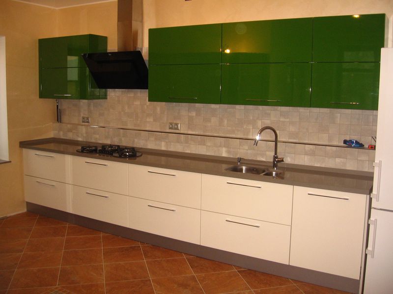 Современная кухня из МДФ. Удлиненные верхние шкафы.