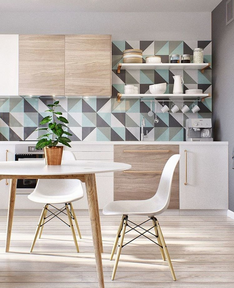 Удлиненные ручки из металла. Глухие фасады из матовой ЛДСП.