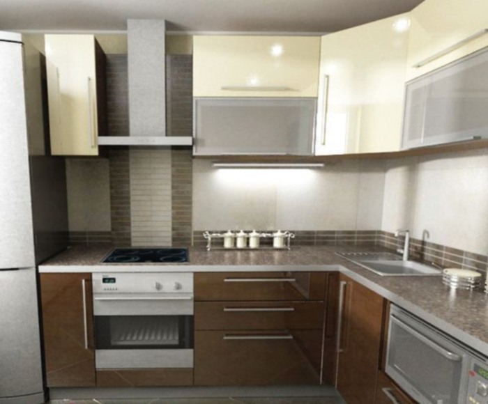 Угловая кухня из МДФ в комбинированном цвете