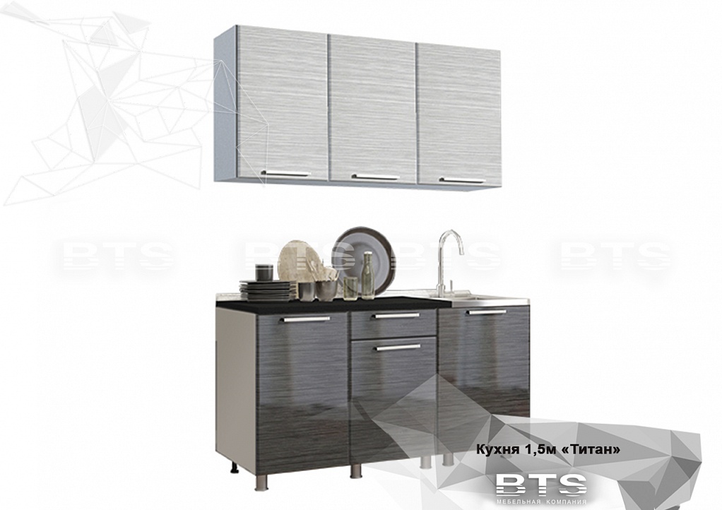 Низ комплекта состоит из стола с 1 створкой (ширина 500 мм), стола с 2 ящиками (ширина 500мм), мойки (ширина 500 мм).