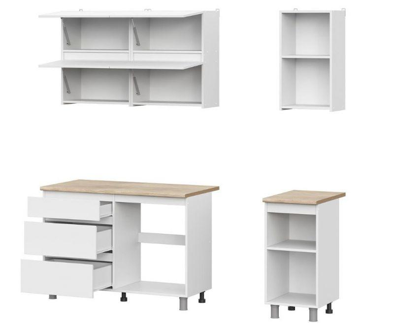 - Гарнитур оснащен всем необходимым для комфортного приготовления пищи и хранения продуктов. Предусмотрены удобные шкафы, полки и ящики, которые позволят вам организовать пространство по своему усмотрению.