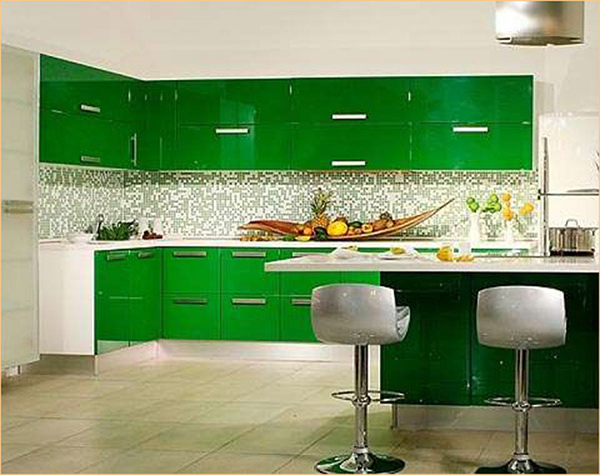 Приятный цвет кухонного комплекта радует взгляд, процесс готовки становится еще более приятным. Удлиненные шкафчики удобны в использовании и оборудованы продолговатыми ручками.