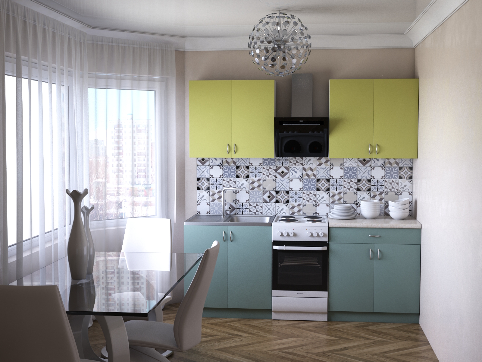 Современный гарнитур в зеленых оттенках.
