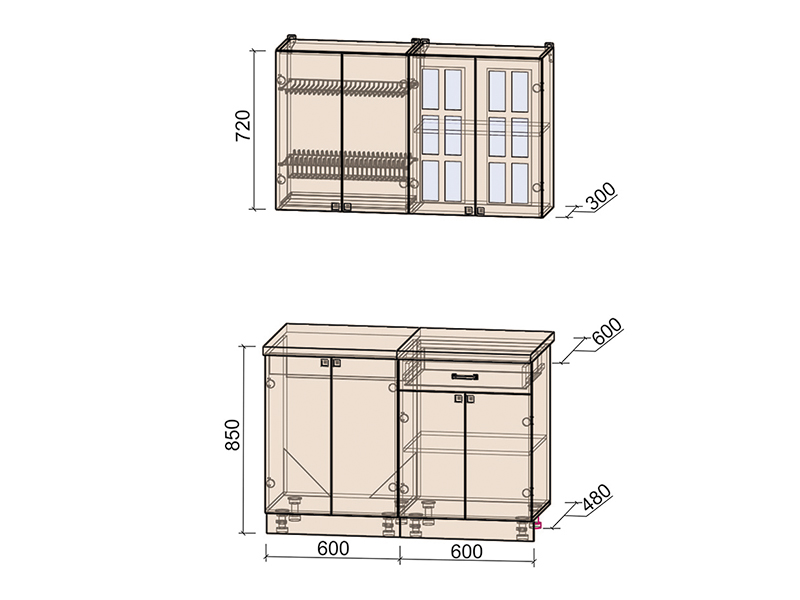код 121193Малый кухонный гарнитур шириной 120 см. Оснащен сушкой.