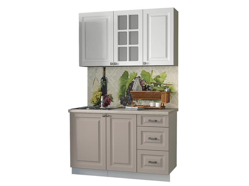 Линейная кухня «Мила Деко» 1.3Б, луна-белый