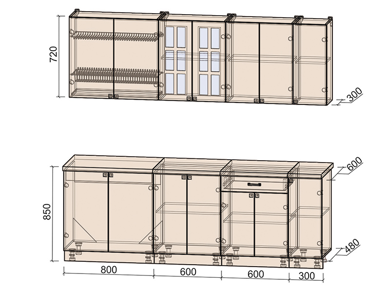 Кухня «Лира-Лайт» 1,5 крем-капучино