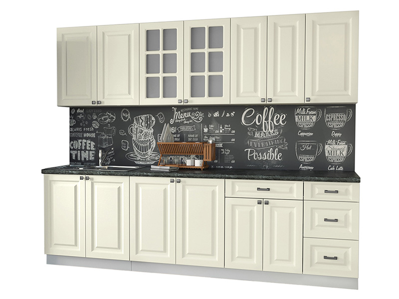 Линейная кухня «Мила Деко» 2.6Б, слоновая кость