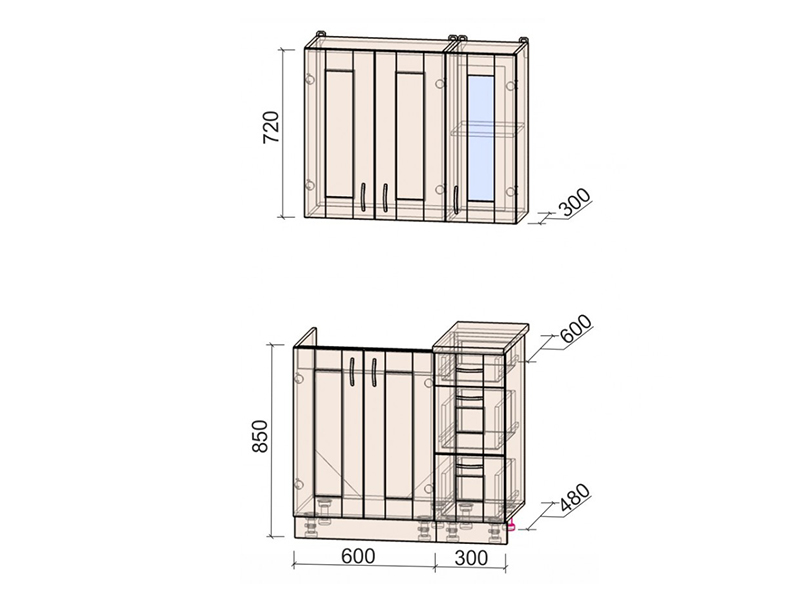 Внимание! Сушильная фурнитура в комплект не входит! Дополнительно кухонный гарнитур можно доукомплектовать шкафом под вытяжку (шириной 50 см или 60 см) и под встраиваемую духовку.