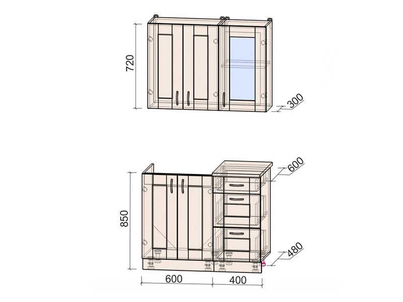Внимание! Сушильная фурнитура в комплект не входит! Дополнительно кухонный гарнитур можно доукомплектовать шкафом под вытяжку (шириной 50 см или 60 см) и под встраиваемую духовку.
