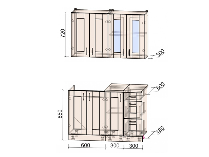Внимание! Сушильная фурнитура в комплект не входит! Дополнительно кухонный гарнитур можно доукомплектовать шкафом под вытяжку (шириной 50 см или 60 см) и под встраиваемую духовку.