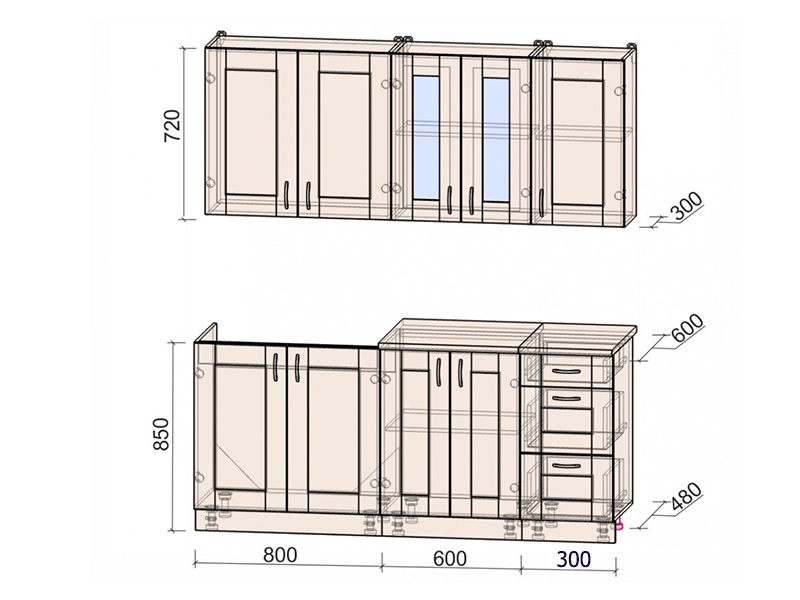 Внимание! Сушильная фурнитура в комплект не входит! Дополнительно кухонный гарнитур можно доукомплектовать шкафом под вытяжку (шириной 50 см или 60 см) и под встраиваемую духовку.