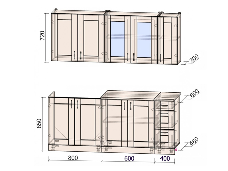 Внимание! Сушильная фурнитура в комплект не входит! Дополнительно кухонный гарнитур можно доукомплектовать шкафом под вытяжку (шириной 50 см или 60 см) и под встраиваемую духовку.